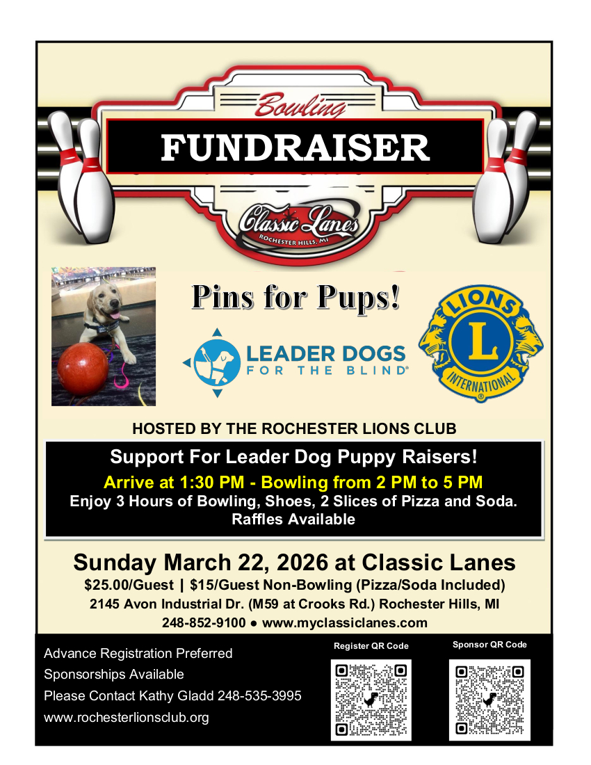 Sunday March 22, 2026Arrive at 1:30 PM - Bowling from 2-5 PM